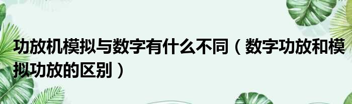 功放机模拟与数字有什么不同(数字功放和模拟功放的区别)