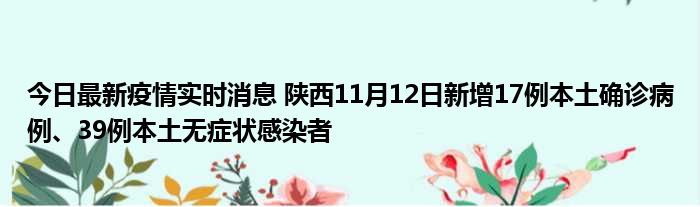 今日最新疫情实时消息 陕西11月12日新增17例本土确诊病例、39例本土无症状感染者