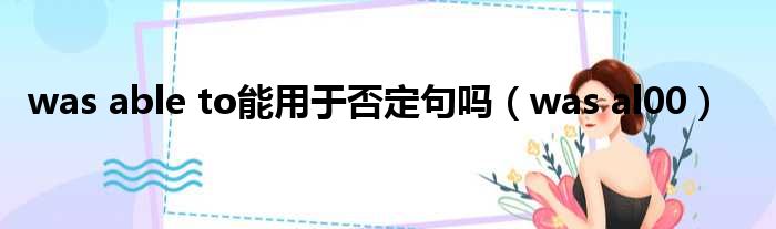 导读 大家好,今天小六子来为大家解答以下的问题,关于was able to能用于否定句吗,was al00这个很多人还不知道,现在让我们一起来看看吧!1、