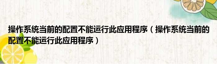 导读 大家好,今天小六子来为大家解答以下的问题,关于操作系统当前的配置不能运行此应用程序,操作系统当前的配置不能运行此应用程序这个很多人
