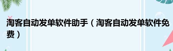 大家好,今天小六子来为大家解答以下的问题,关于淘客自动发单软件助手,淘客自动发单软件免费这个很多人还不知道,现在让我们一起来看看吧!