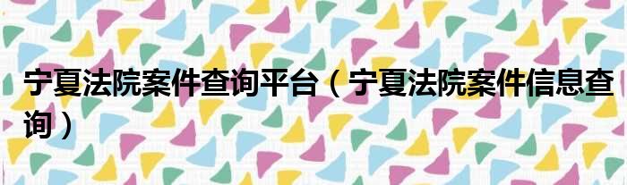 宁夏法院案件查询平台(宁夏法院案件信息查询)
