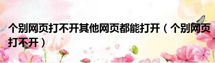个别网页打不开其他网页都能打开(个别网页打不开)