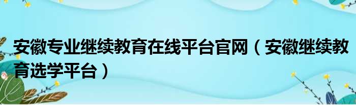 安徽专业继续教育在线平台官网(安徽继续教育选学平台)