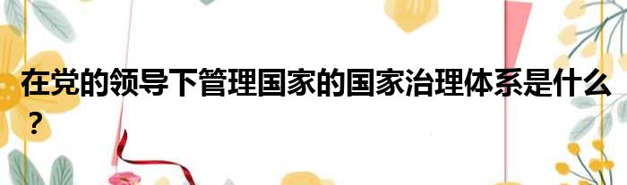 在党的领导下管理国家的国家治理体系是什么?
