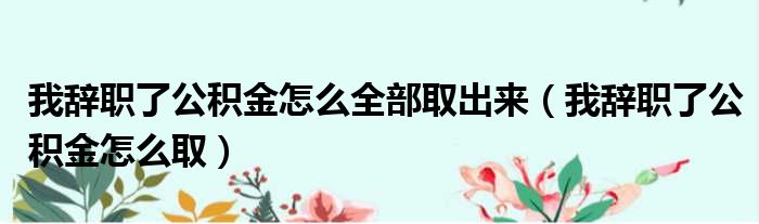 我辞职了公积金怎么全部取出来(我辞职了公积金怎么取)