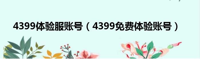 导读 大家好,今天小六子来为大家解答以下的问题,关于4399体验服账号,4399免费体验账号这个很多人还不知道,现在让我们一起来看看吧!1、可以免