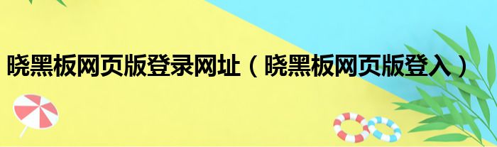 晓黑板网页版登录网址(晓黑板网页版登入)