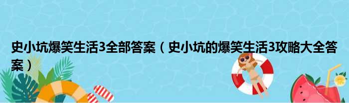 史小坑爆笑生活3全部答案(史小坑的爆笑生活3攻略大全答案)