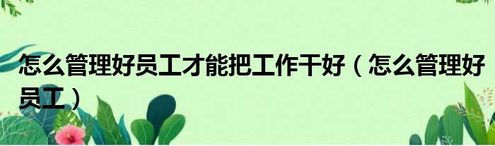 怎么管理好员工才能把工作干好(怎么管理好员工)