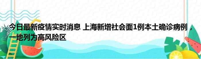 今日最新疫情实时消息 上海新增社会面1例本土确诊病例,一地列为高风险区
