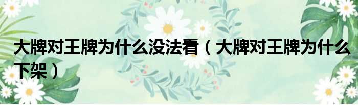 大牌对王牌为什么没法看(大牌对王牌为什么下架)
