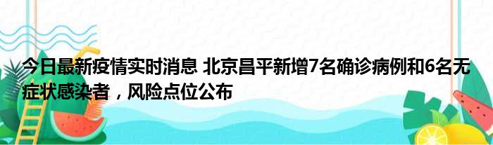 今日最新疫情实时消息 北京昌平新增7名确诊病例和6名无症状感染者,风险点位公布