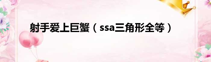 大家好,今天小六子来为大家解答以下的问题,关于射手爱上巨蟹,ssa三角形全等这个很多人还不知道,现在让我们一起来看看吧!