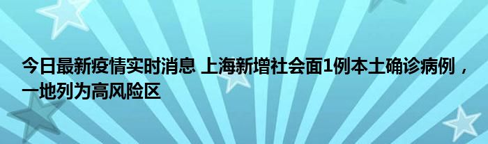 今日最新疫情实时消息 上海新增社会面1例本土确诊病例,一地列为高风险区