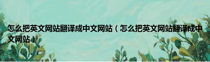 怎么把英文网站翻译成中文网站(怎么把英文网站翻译成中文网站)