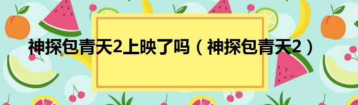 导读 大家好,今天小六子来为大家解答以下的问题,关于神探包青天2上映了吗,神探包青天2这个很多人还不知道,现在让我们一起来看看吧!1、截至到