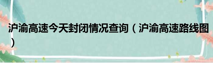 导读 大家好,今天小六子来为大家解答以下的问题,关于沪渝高速今天封闭情况查询,沪渝高速路线图这个很多人还不知道,现在让我们一起来看看吧!1