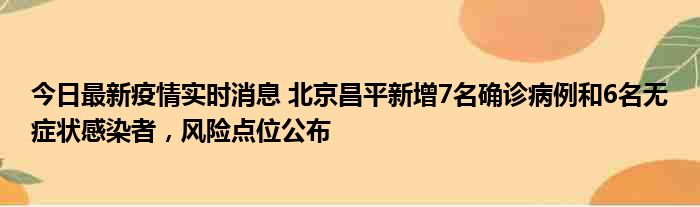 今日最新疫情实时消息 北京昌平新增7名确诊病例和6名无症状感染者,风险点位公布