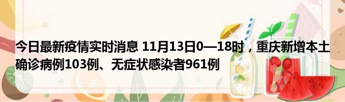 今日最新疫情实时消息 11月13日0—18时,重庆新增本土确诊病例103例、无症状感染者961例
