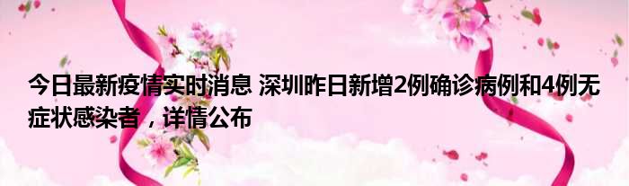 今日最新疫情实时消息 深圳昨日新增2例确诊病例和4例无症状感染者,详情公布