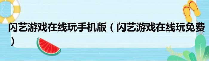 闪艺游戏在线玩手机版(闪艺游戏在线玩免费)