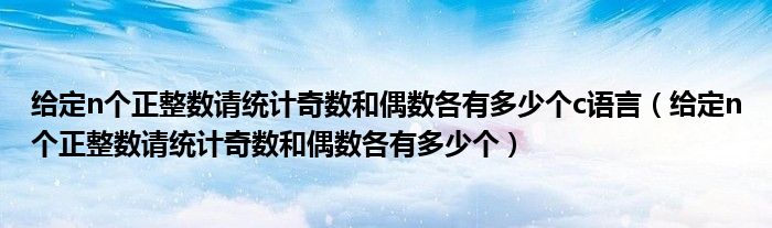 导读 大家好,今天小六子来为大家解答以下的问题,关于给定n个正整数请统计奇数和偶数各有多少个c语言,给定n个正整数请统计奇数和偶数各有多少个