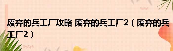 废弃的兵工厂攻略 废弃的兵工厂2(废弃的兵工厂2)