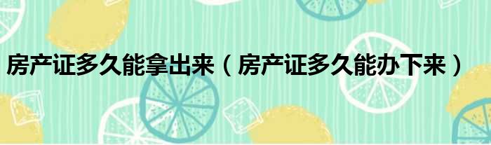 导读 大家好,今天小六子来为大家解答以下的问题,关于房产证多久能拿出来,房产证多久能办下来这个很多人还不知道,现在让我们一起来看看吧!1、