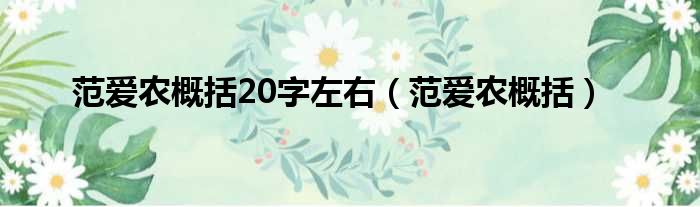 大家好,今天小六子来为大家解答以下的问题,关于范爱农概括20字左右,范爱农概括这个很多人还不知道,现在让我们一起来看看吧!