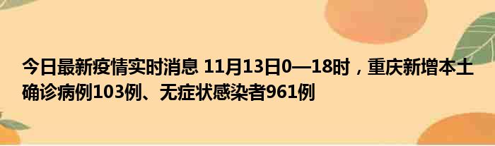 今日最新疫情实时消息 11月13日0—18时,重庆新增本土确诊病例103例、无症状感染者961例