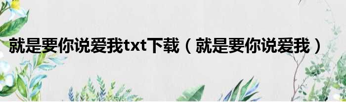 导读 大家好,今天小六子来为大家解答以下的问题,关于就是要你说爱我txt下载,就是要你说爱我这个很多人还不知道,现在让我们一起来看看吧!1、