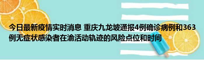 今日最新疫情实时消息 重庆九龙坡通报4例确诊病例和363例无症状感染者在渝活动轨迹的风险点位和时间