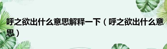 呼之欲出什么意思解释一下(呼之欲出什么意思)