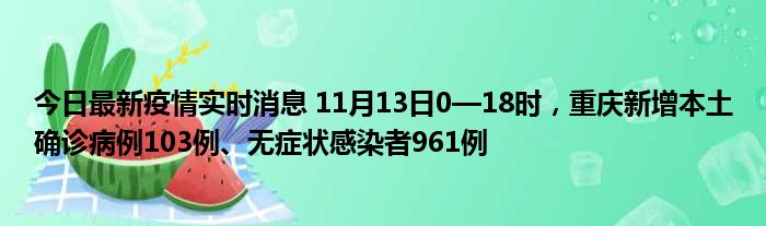 今日最新疫情实时消息 11月13日0—18时,重庆新增本土确诊病例103例、无症状感染者961例
