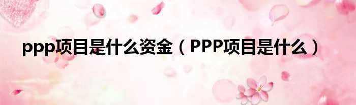 ppp项目是什么资金(PPP项目是什么)