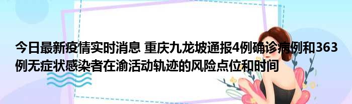 今日最新疫情实时消息 重庆九龙坡通报4例确诊病例和363例无症状感染者在渝活动轨迹的风险点位和时间