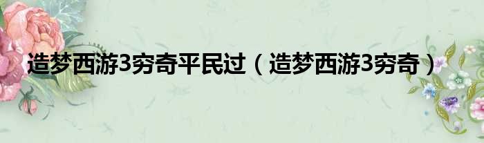 造梦西游3穷奇平民过(造梦西游3穷奇)