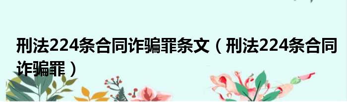 刑法224条合同诈骗罪条文(刑法224条合同诈骗罪)
