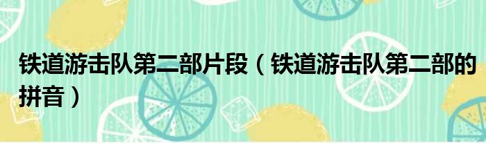 铁道游击队第二部片段(铁道游击队第二部的拼音)