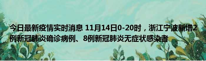 今日最新疫情实时消息 11月14日0-20时,浙江宁波新增2例新冠肺炎确诊病例、8例新冠肺炎无症状感染者
