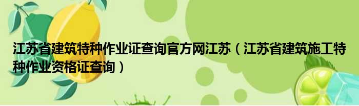江苏省建筑特种作业证查询官方网江苏(江苏省建筑施工特种作业资格证查询)