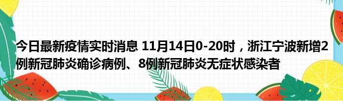 今日最新疫情实时消息 11月14日0-20时,浙江宁波新增2例新冠肺炎确诊病例、8例新冠肺炎无症状感染者