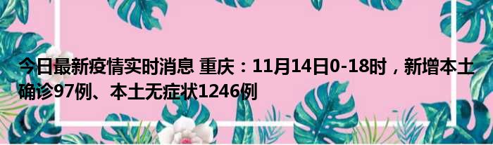 今日最新疫情实时消息 重庆:11月14日0-18时,新增本土确诊97例、本土无症状1246例