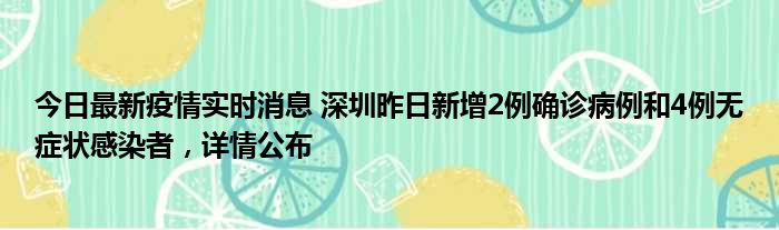 今日最新疫情实时消息 深圳昨日新增2例确诊病例和4例无症状感染者,详情公布