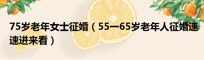 导读 大家好,今天小六子来为大家解答以下的问题,关于75岁老年女士征婚,55一65岁老年人征婚速速进来看这个很多人还不知道,现在让我们一起来看