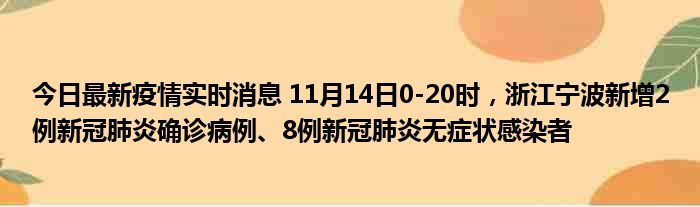 今日最新疫情实时消息 11月14日0-20时,浙江宁波新增2例新冠肺炎确诊病例、8例新冠肺炎无症状感染者