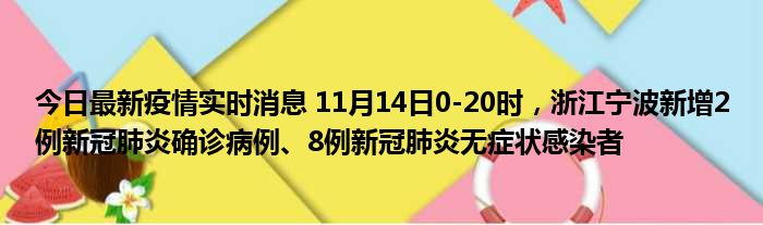 今日最新疫情实时消息 11月14日0-20时,浙江宁波新增2例新冠肺炎确诊病例、8例新冠肺炎无症状感染者