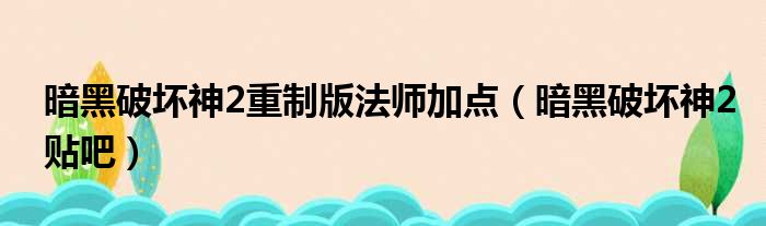 大家好,今天小六子来为大家解答以下的问题,关于暗黑破坏神2重制版法师加点,暗黑破坏神2贴吧这个很多人还不知道,现在让我们一起来看看吧!