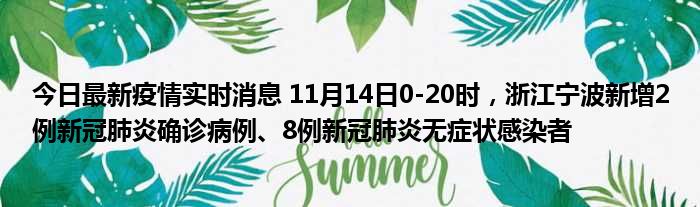 今日最新疫情实时消息 11月14日0-20时,浙江宁波新增2例新冠肺炎确诊病例、8例新冠肺炎无症状感染者